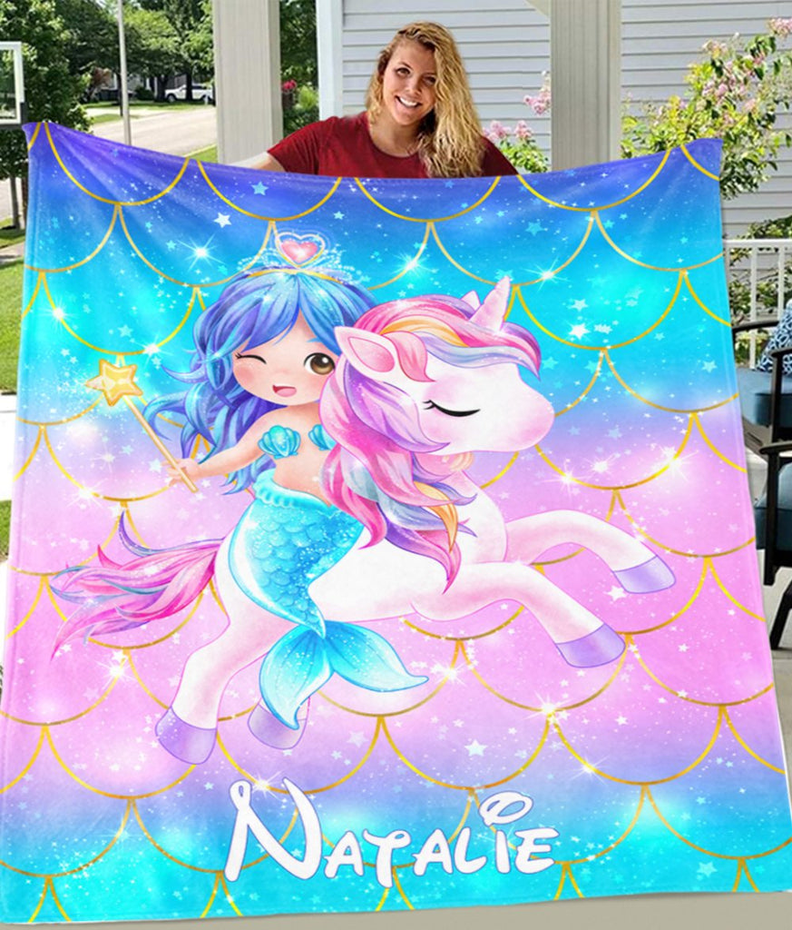 Personalized Magical Unicorn & Mermaid Fleece Blankets II - BUY 2 SAVE 10%