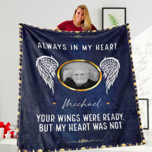 Personalized Photo Memorial Blanket, Always In My Heart Blanket, Custom Memorial Blanket, Gift Of Sympathy, Gift for Memorial Day