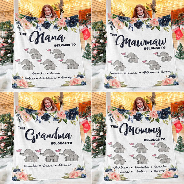 Custom ELEPHANT FAMILY Blanket with Nickname & Kids Names