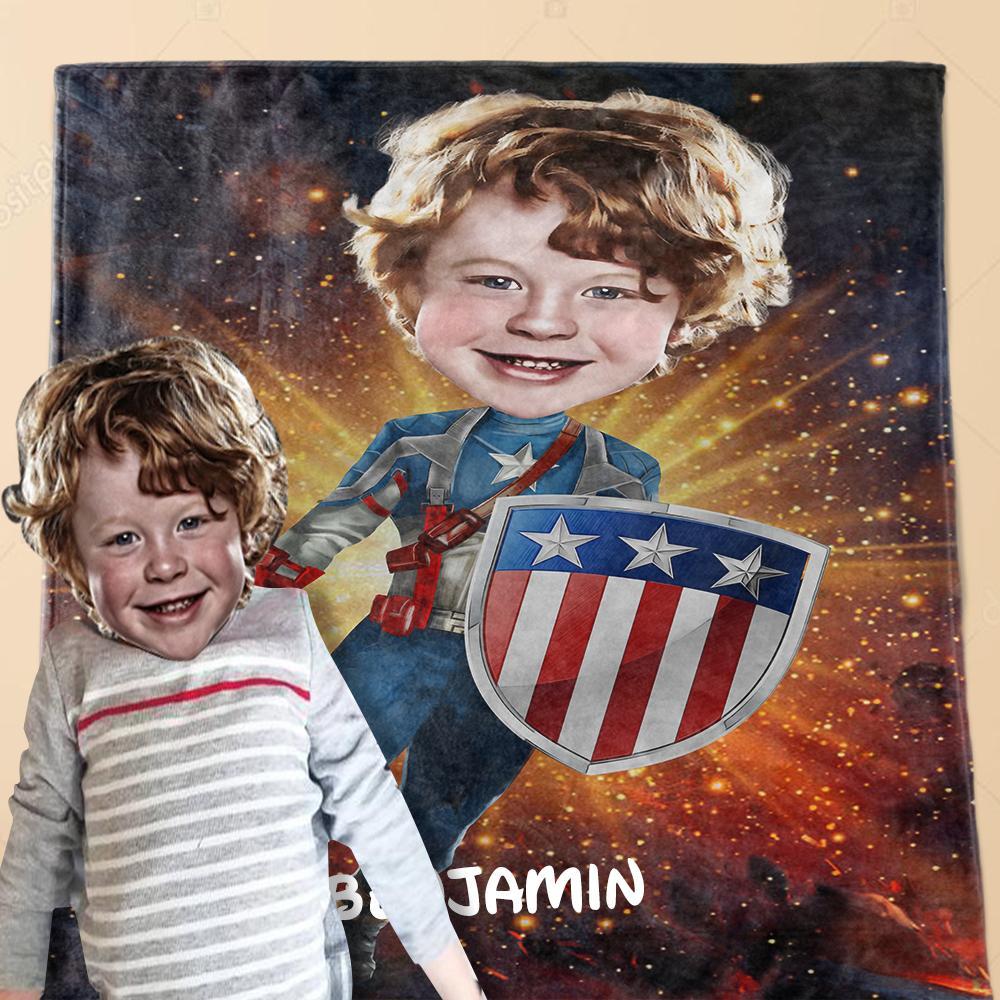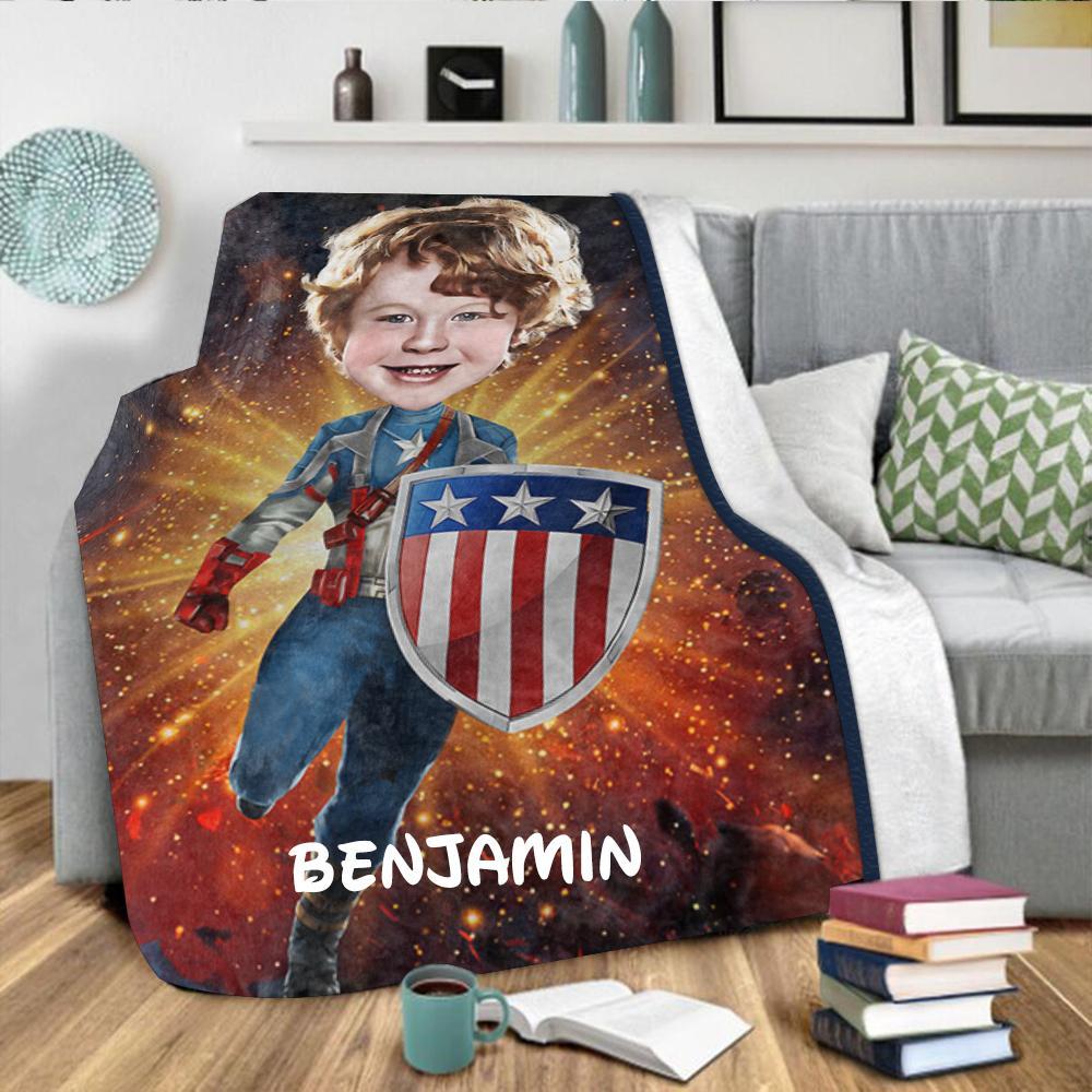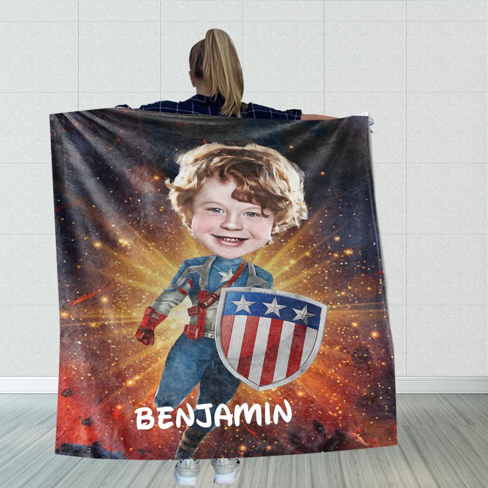 Personalized Hand-Drawing Kid's Photo Portrait Fleece Blanket II--Made in USA!
