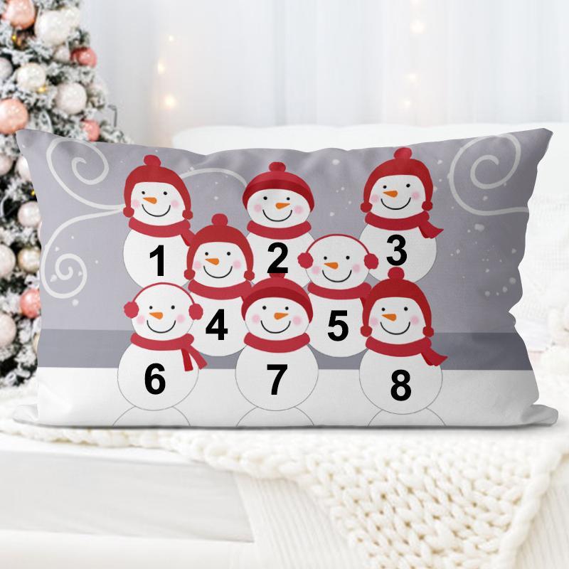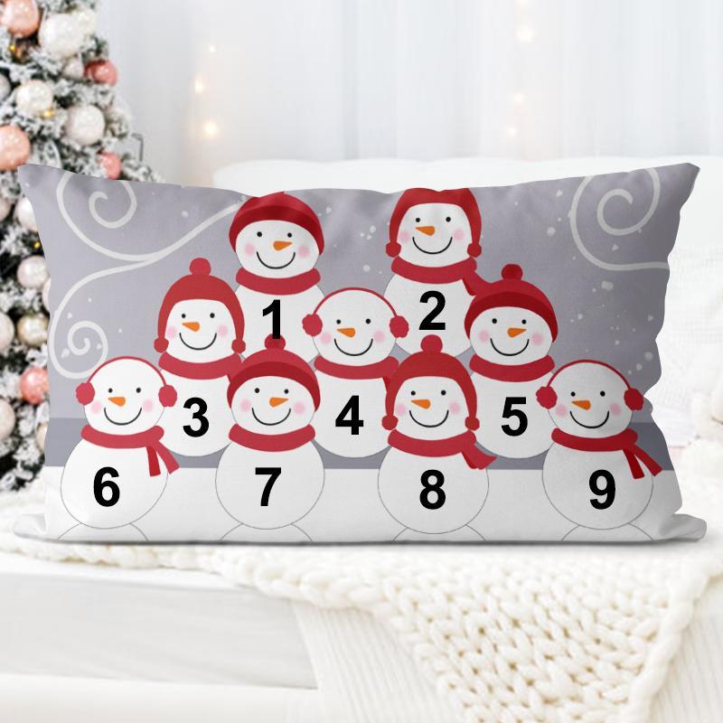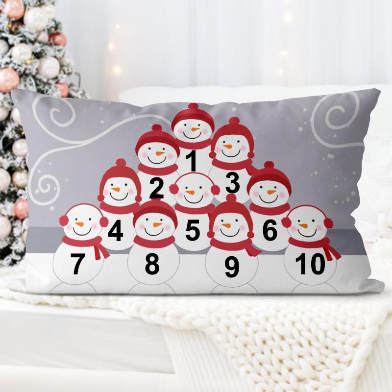 Note: 1-10 snowmen available (1-10 names can be customized and snowman type on pillow can not be changed)