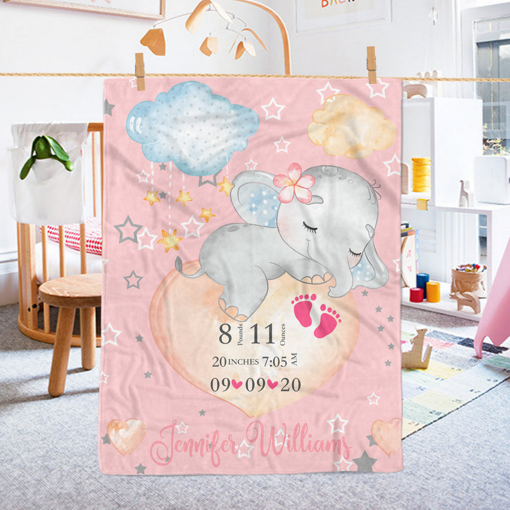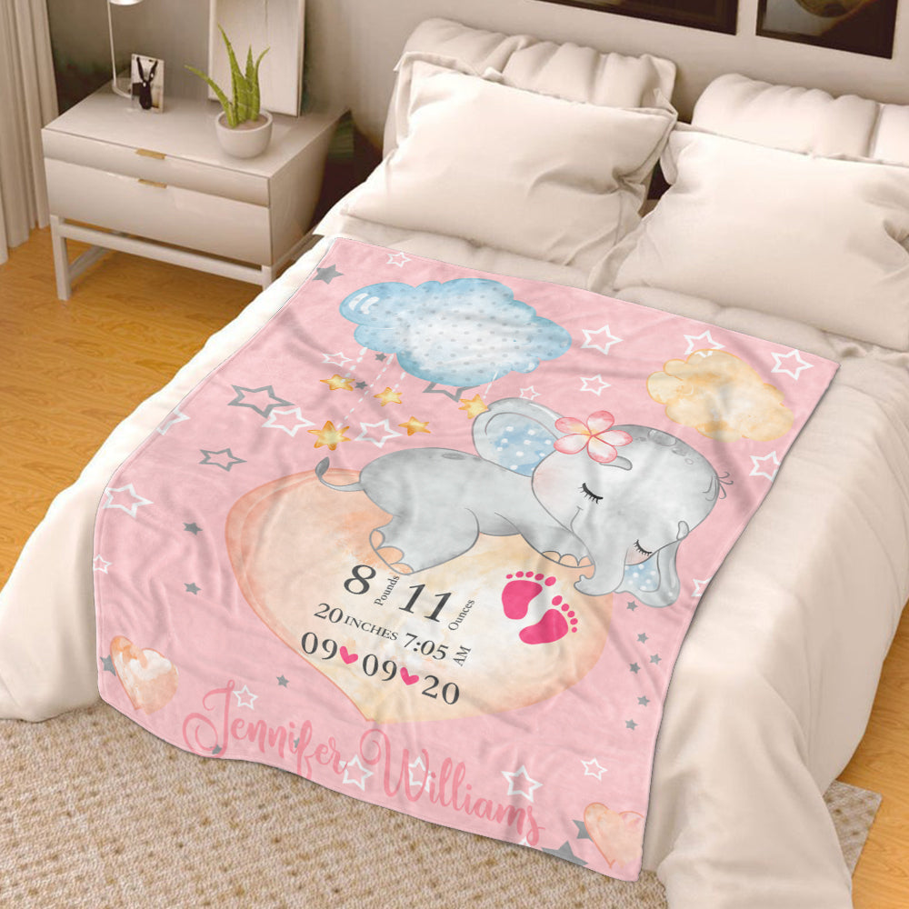 Custom Baby's Name Elephant Fleece Blanket