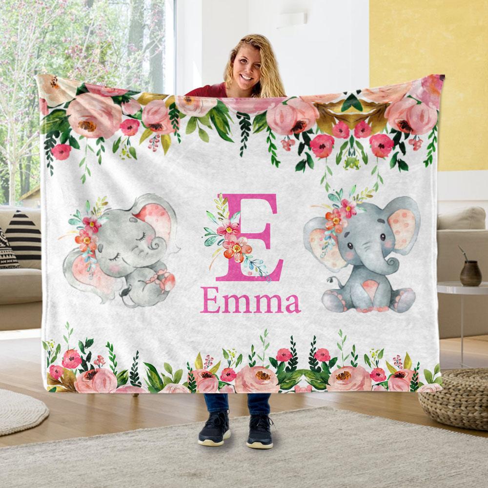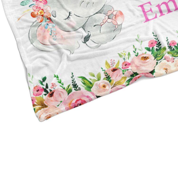 Enter your name and cutomize one-of-a-kind super cute floral elephant blanket!
