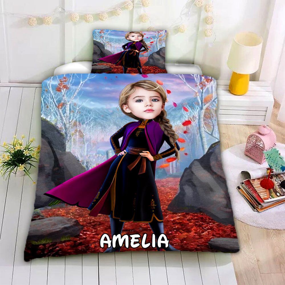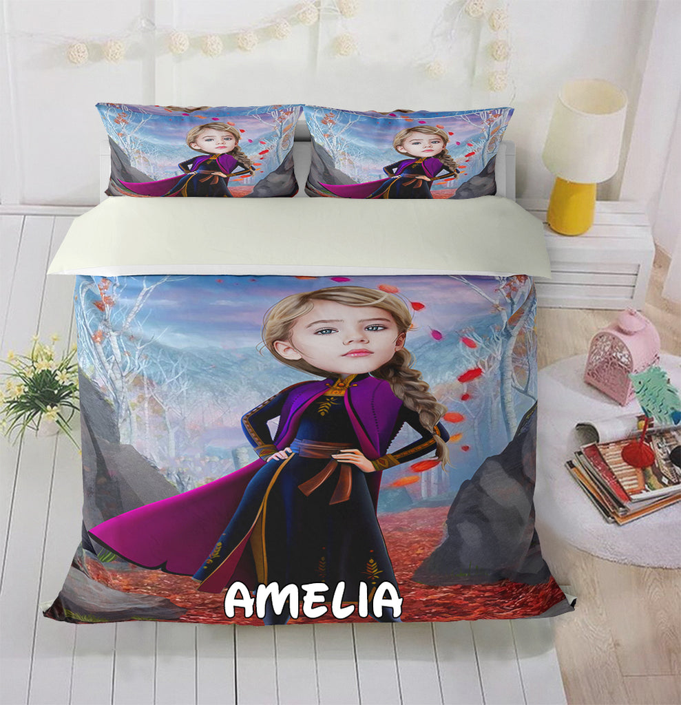 Personalized Hand-Drawing Kid's Photo Portrait Cozy Microfiber Bedding Set XVII