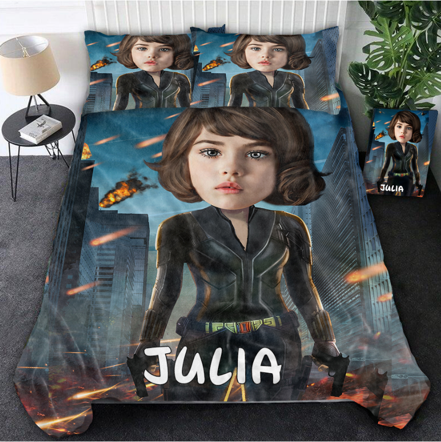 Print portrait and name on super cozy bedding set and make your loved one jump on her/his bed for a sweet night sleep.