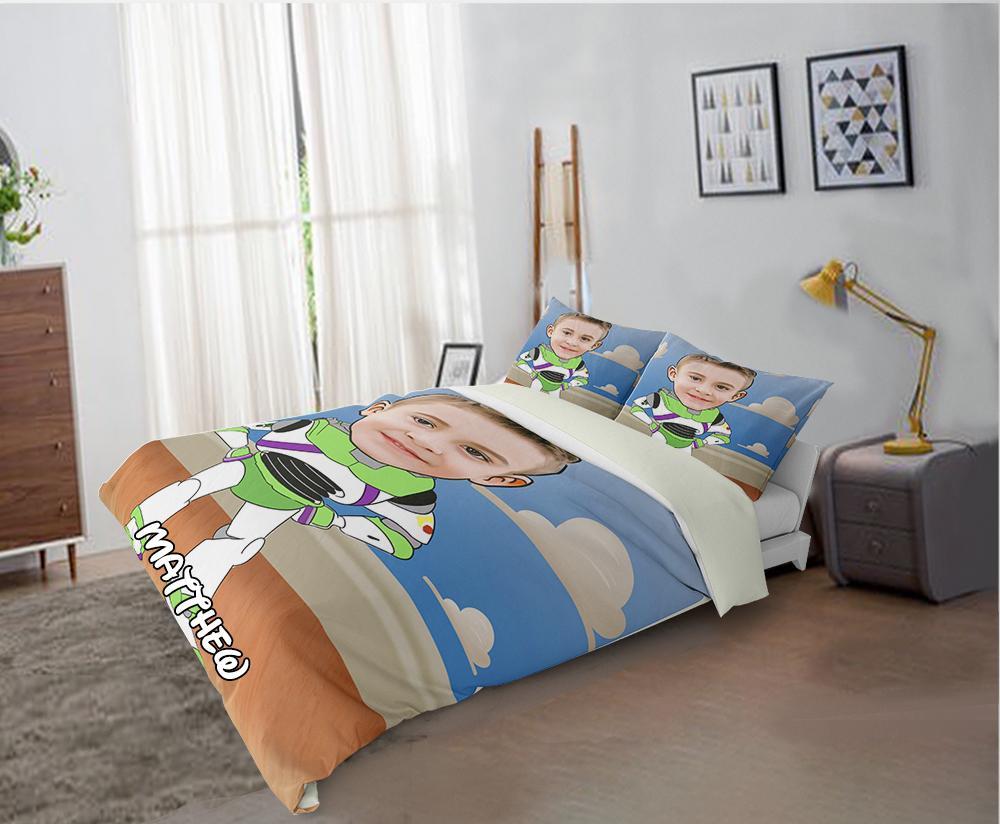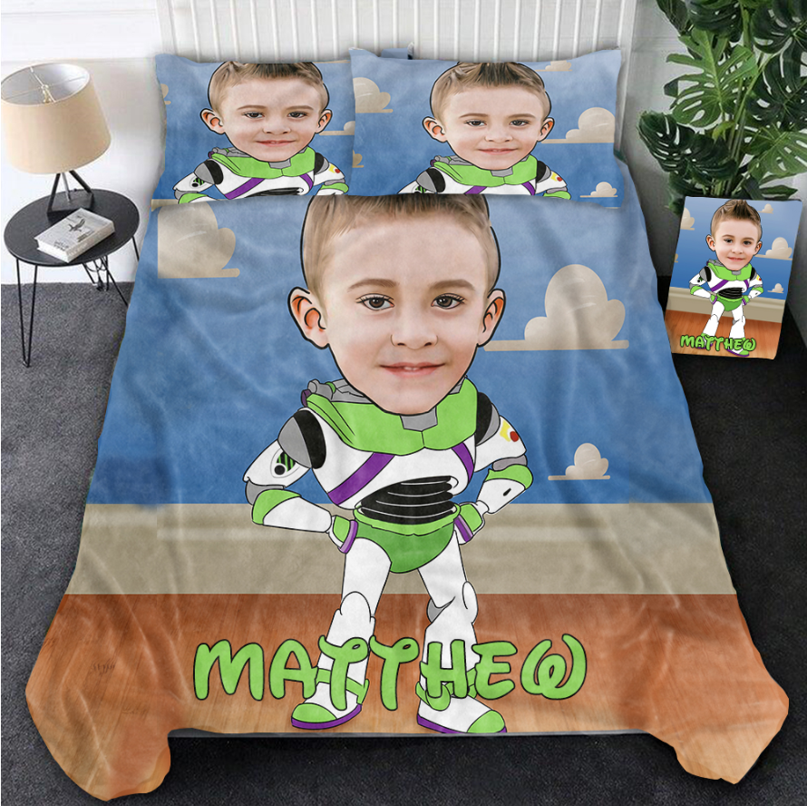 Print portrait and name on super cozy bedding set and make your loved one jump on her/his bed for a sweet night sleep.