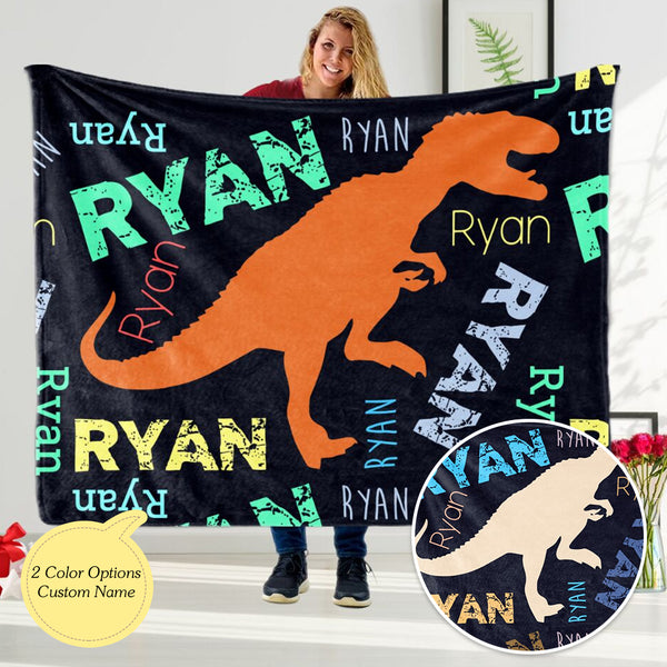 Personalized Dinosaur Name Blanket, Dinosaur Blanket T-Rex, Boy Blanket Dinosaur Name Blanket Toddler Blanket