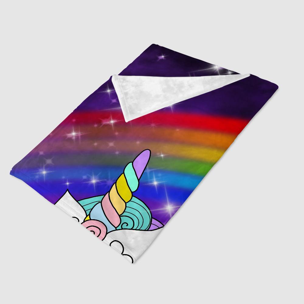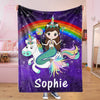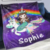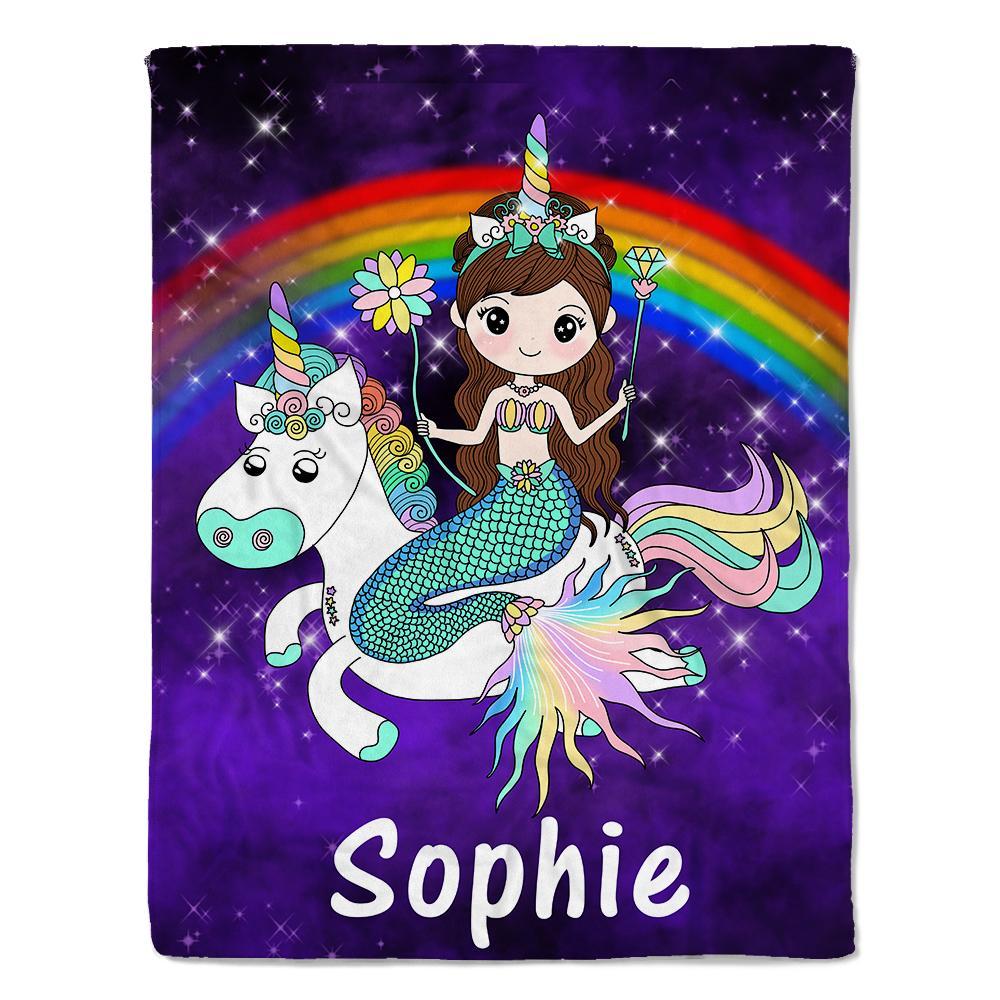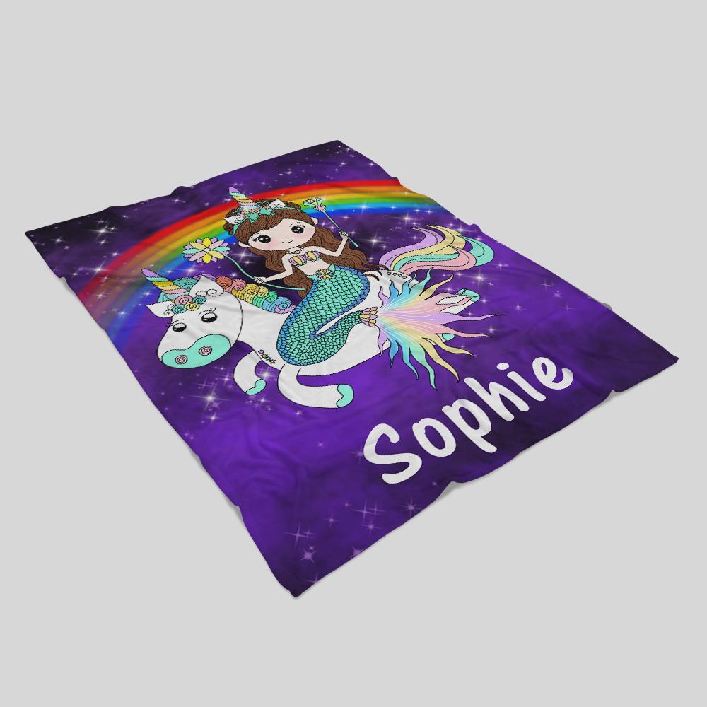 Custom Mermaid & Rainbow Unicorn Cozy Plush Fleece Blanket Purple
