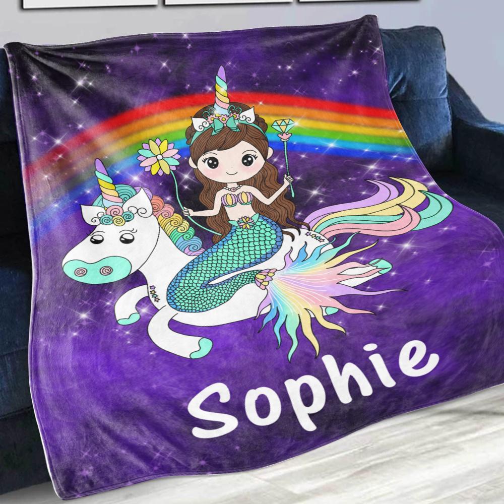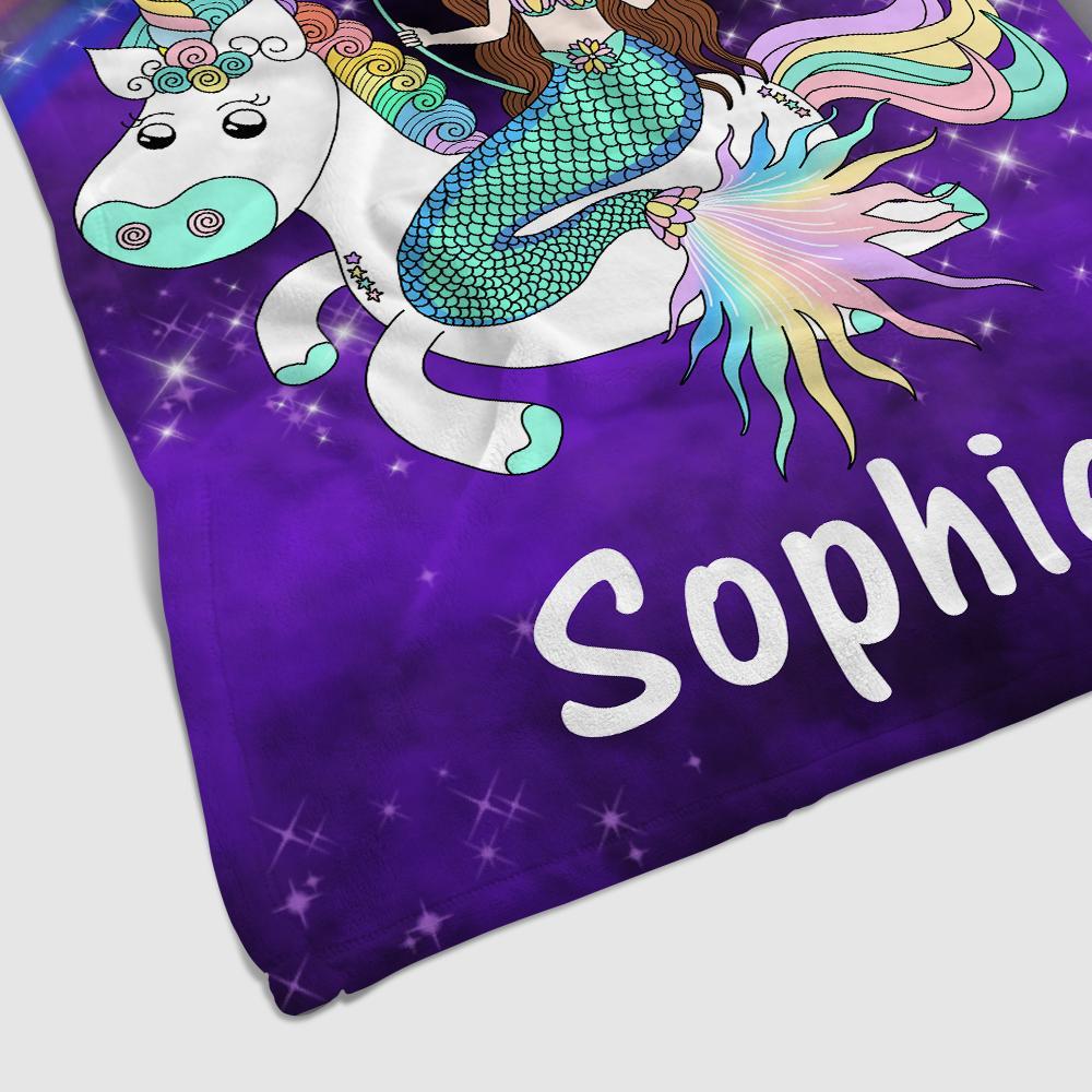 This premium soft and super plush personalized fleece blanket featuring mermaid & unicorn will quickly become your favorite blanket.