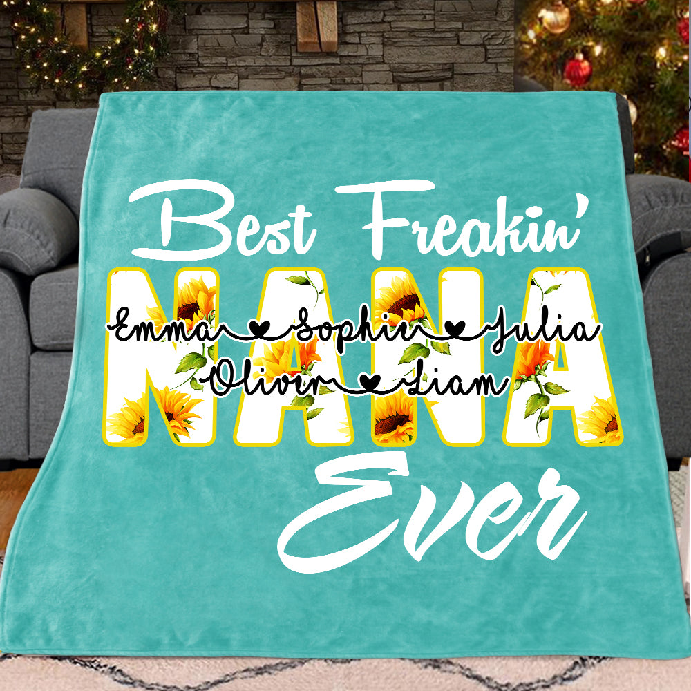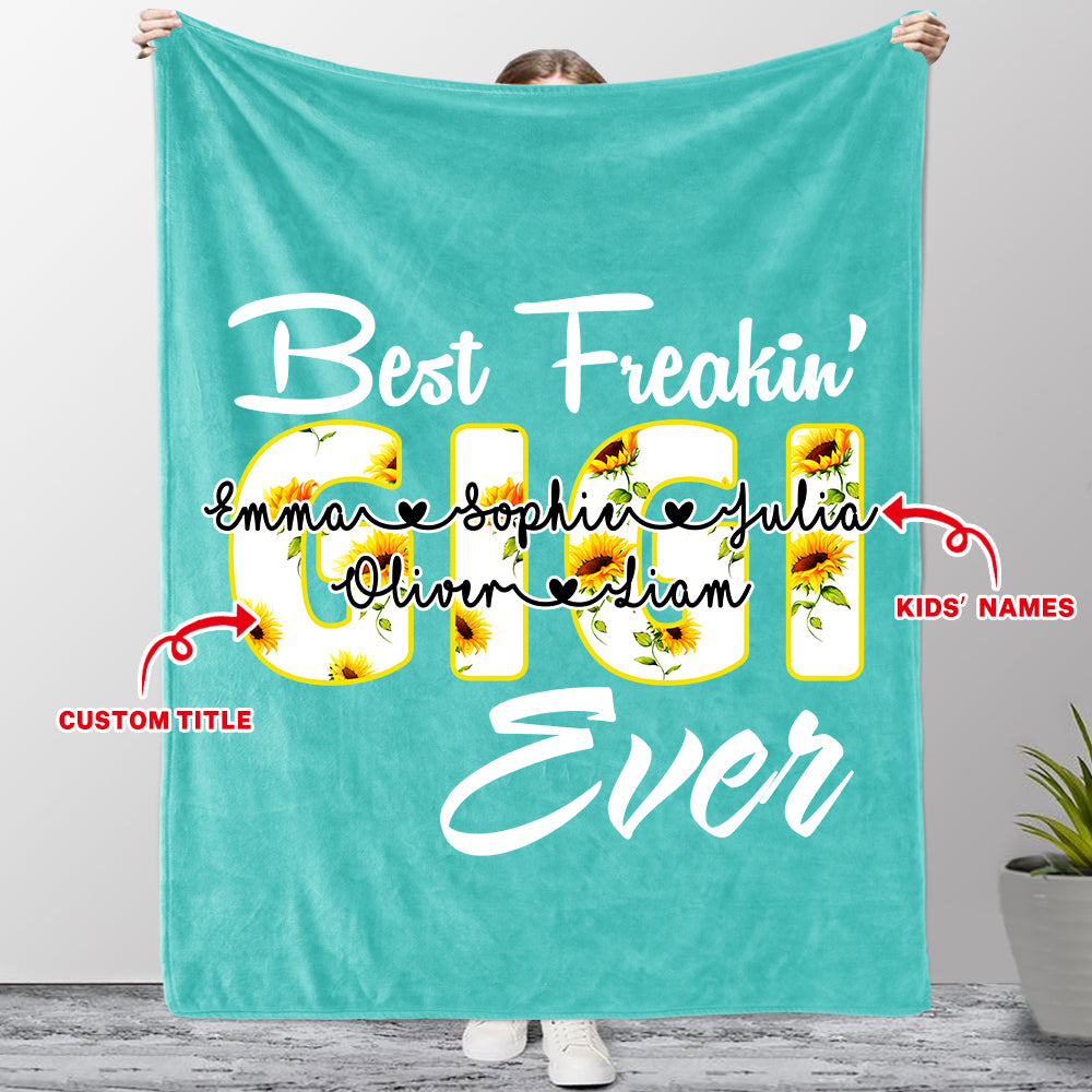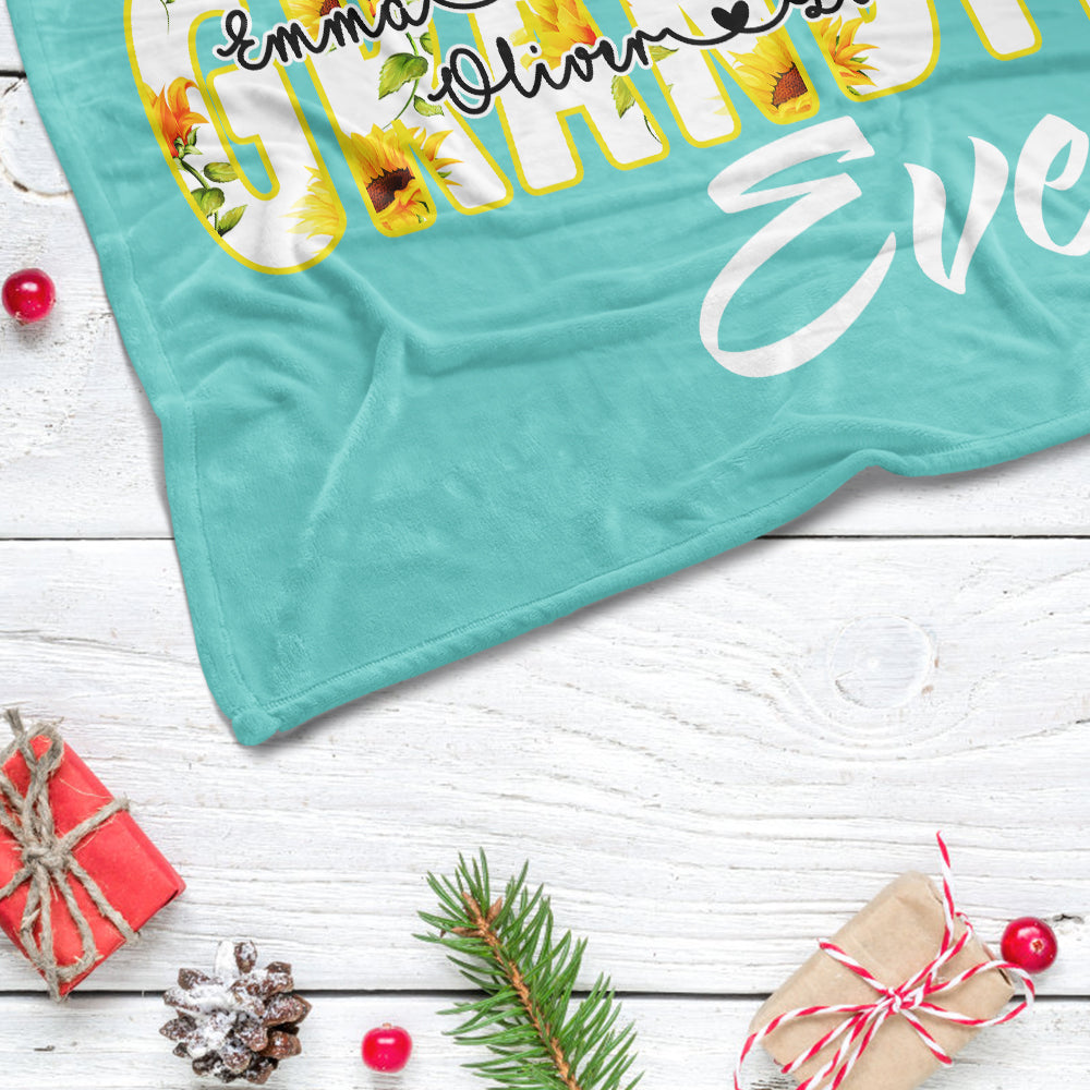 Custom Sunflower Grandparent Blanket with Grandkids' Names