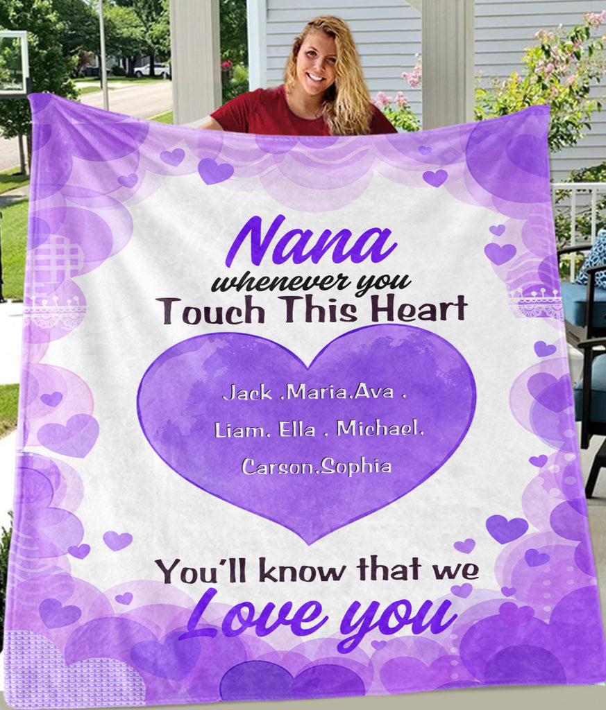 This personalized blanket is adorned with nickname and kids'/grandkids' names. Made with soft, cozy microfiber fabric and designed to be long enough to wrap around your feet for maximum comfort, the blanket makes a perfect gift for all occasions and can be a lifetime keepsake.