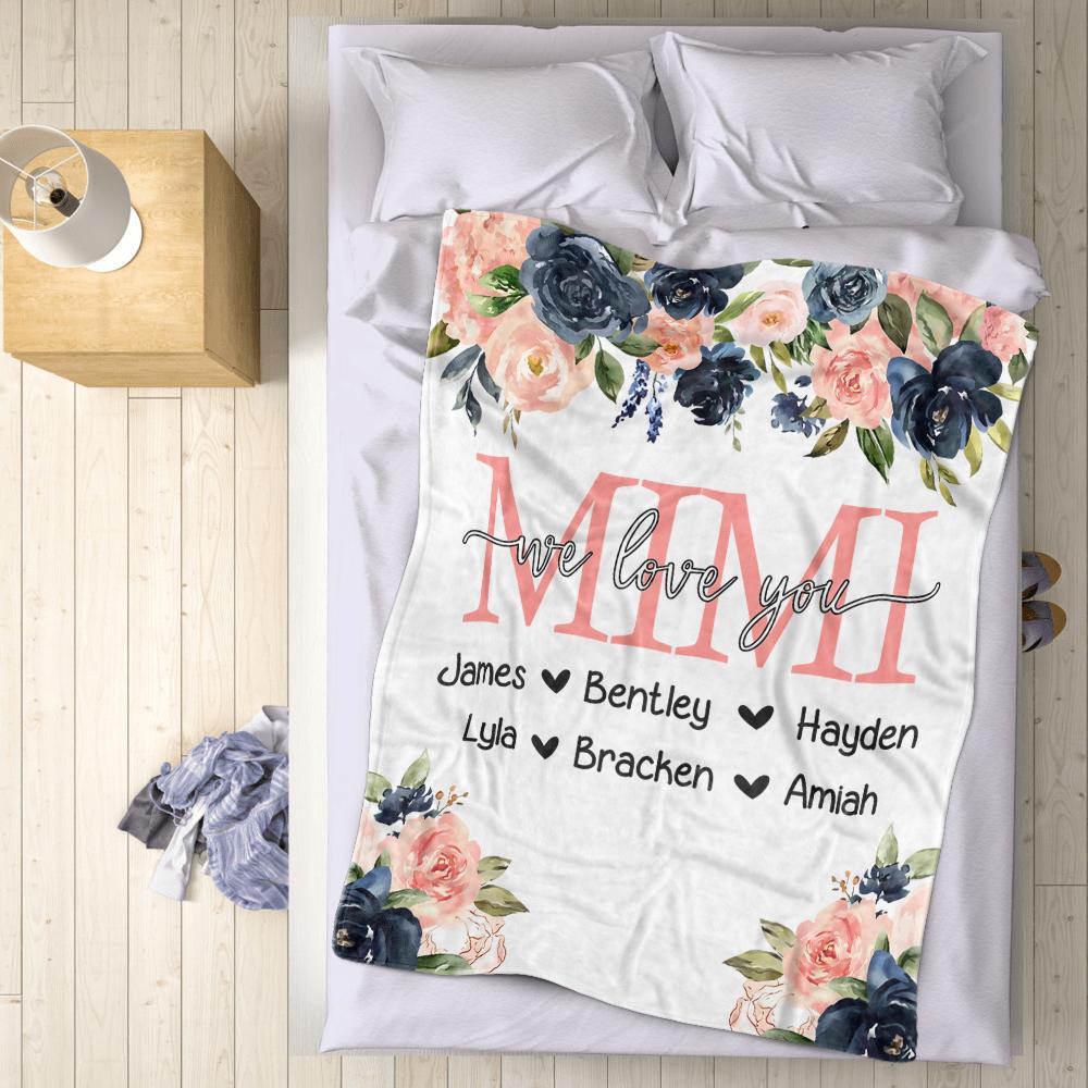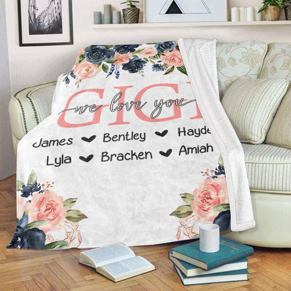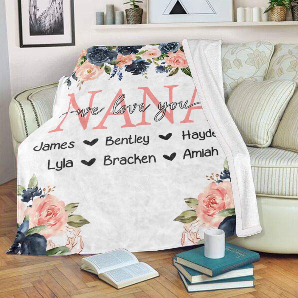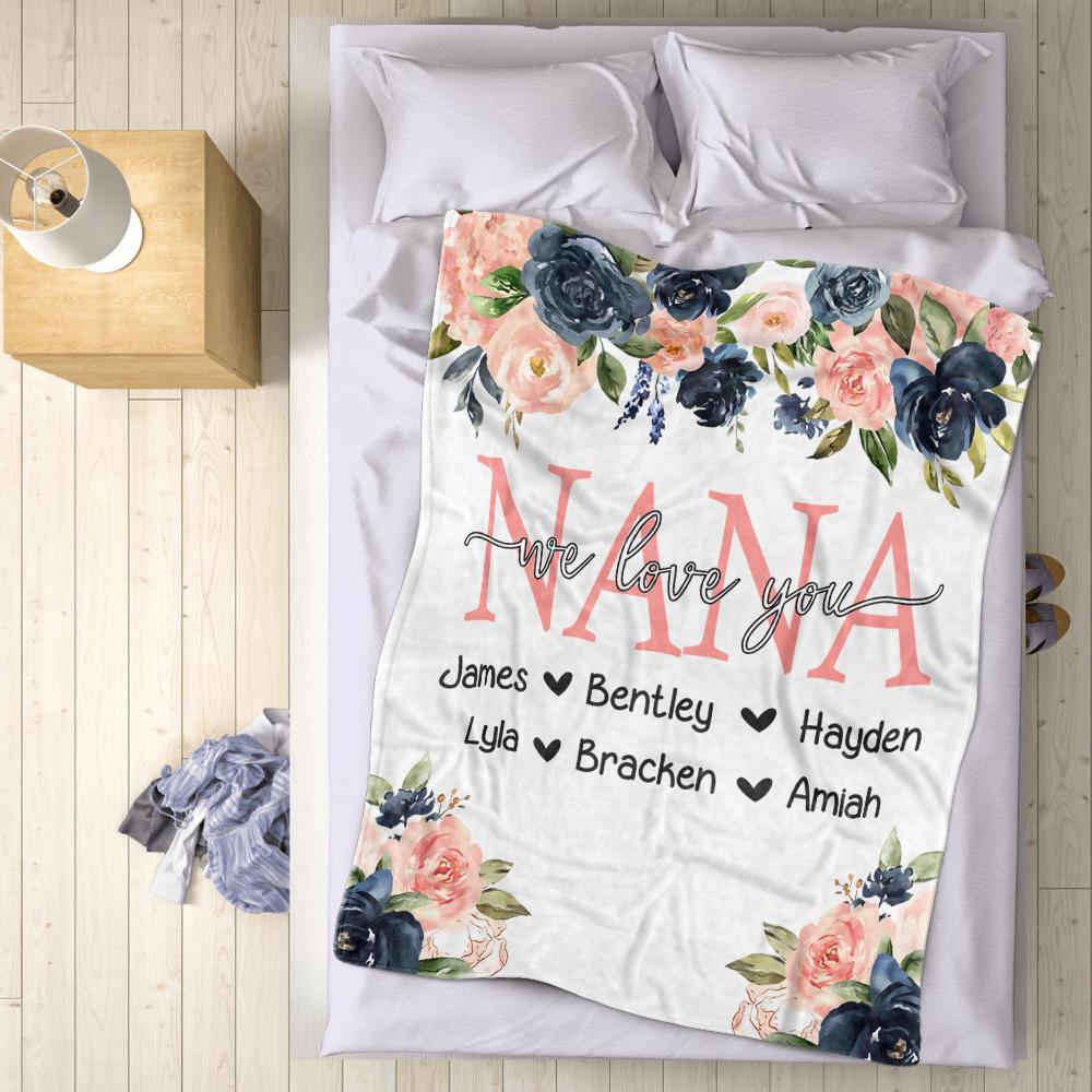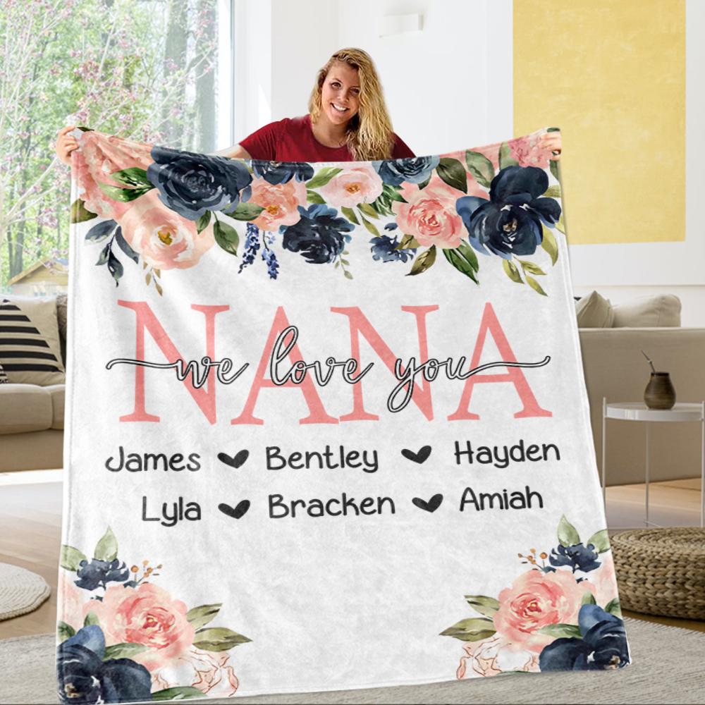 Personalize this blanket with your Nickname of a loved one & her grandkids' or kids' names!