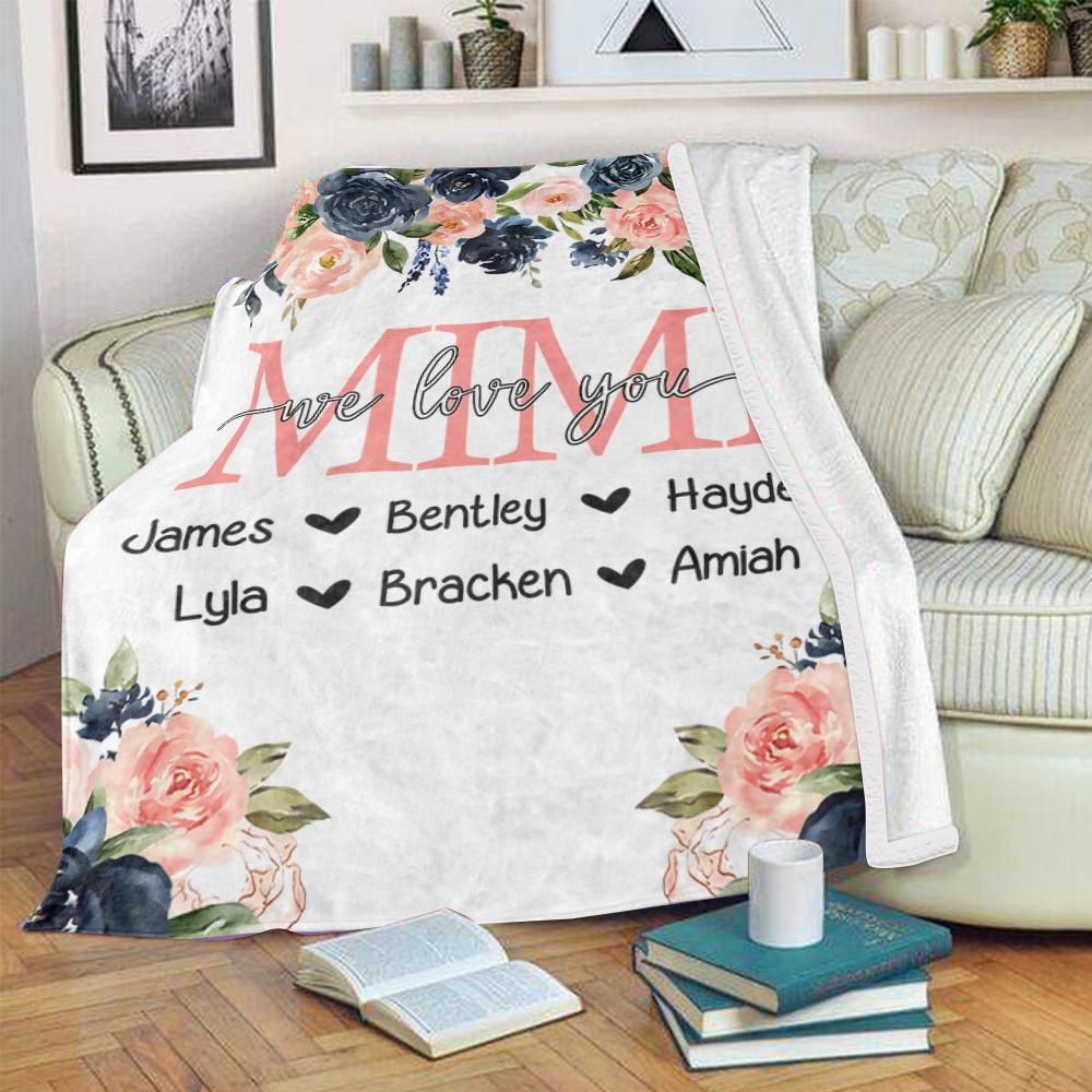 Custom Watercolor Floral Cozy Plush Fleece Blankets with Your Nick & Kids' Names-BUY 2 SAVE 10%