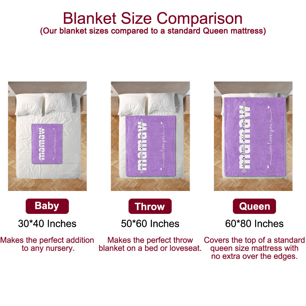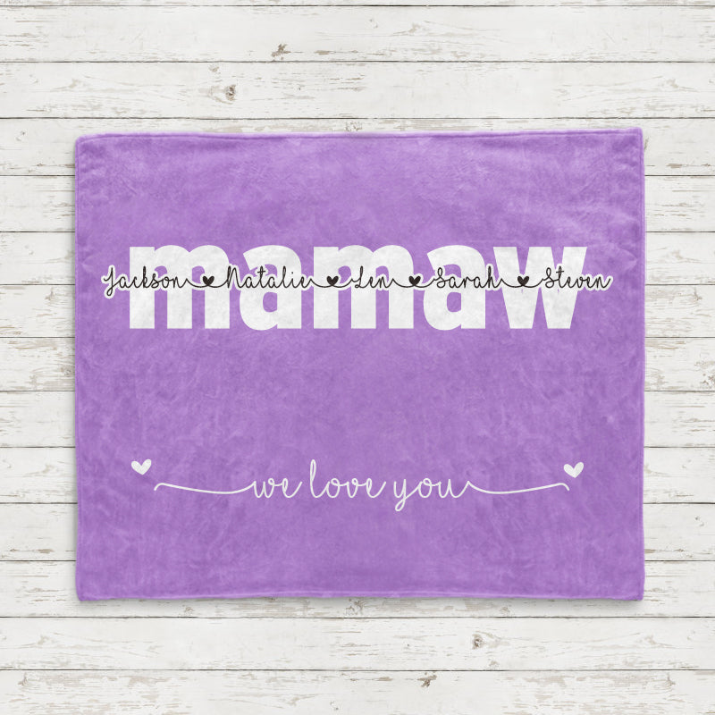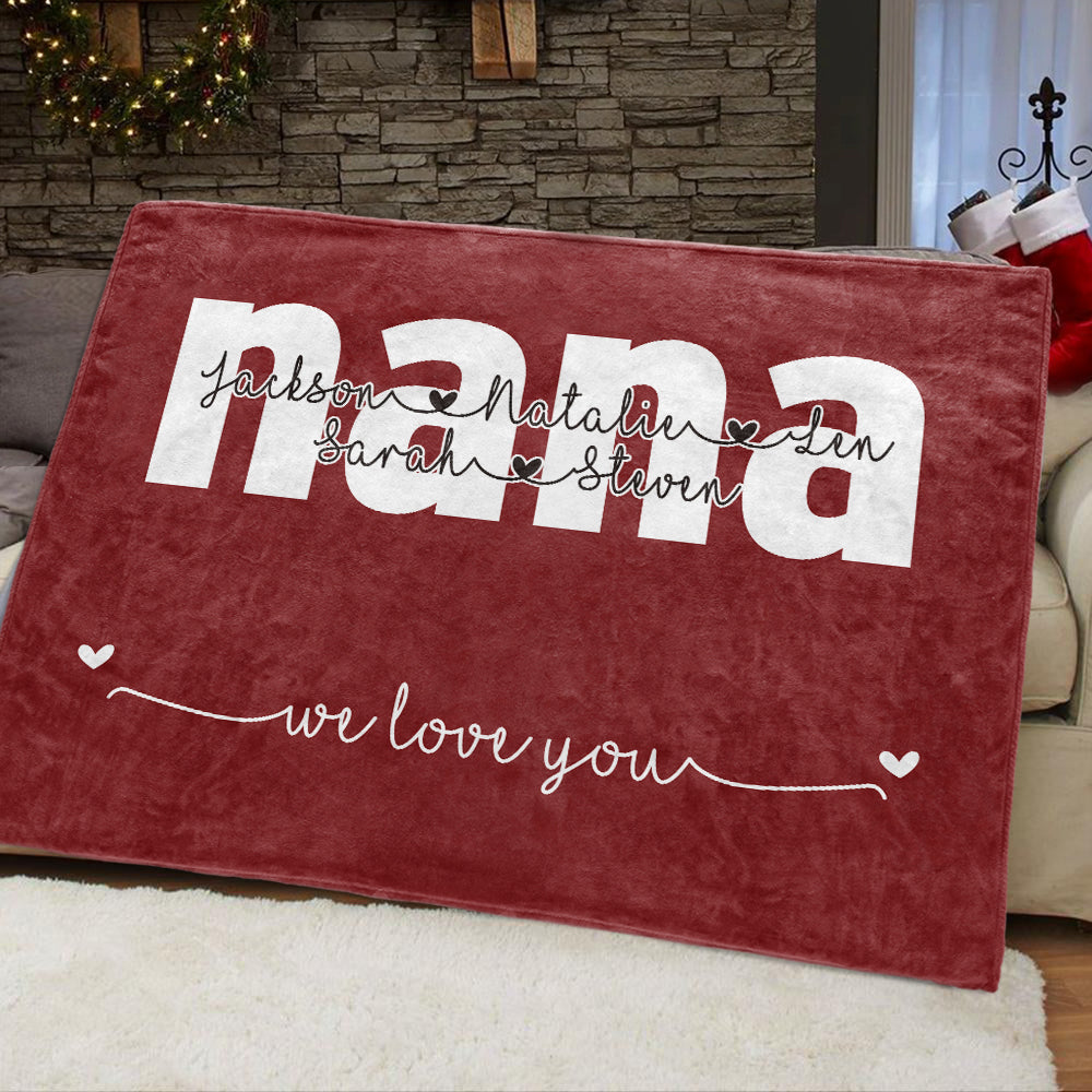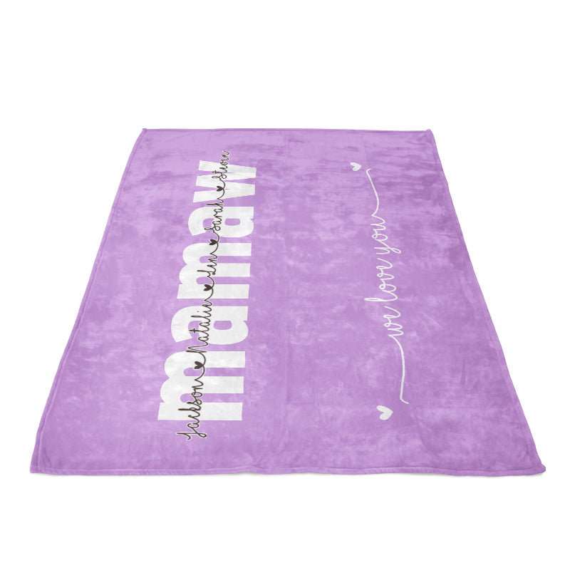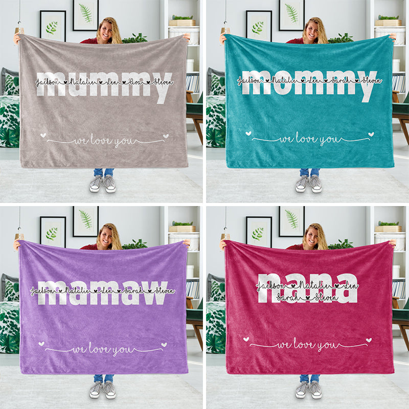 This personalized blanket is adorned with nickname and kids'/grandkids' names. Made with soft, cozy microfiber fabric and designed to be long enough to wrap around your feet for maximum comfort, the blanket makes a perfect gift for all occasions and can be a lifetime keepsake.