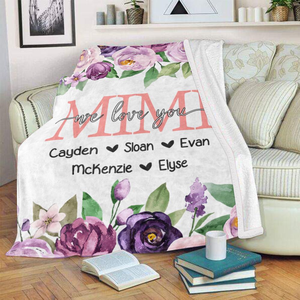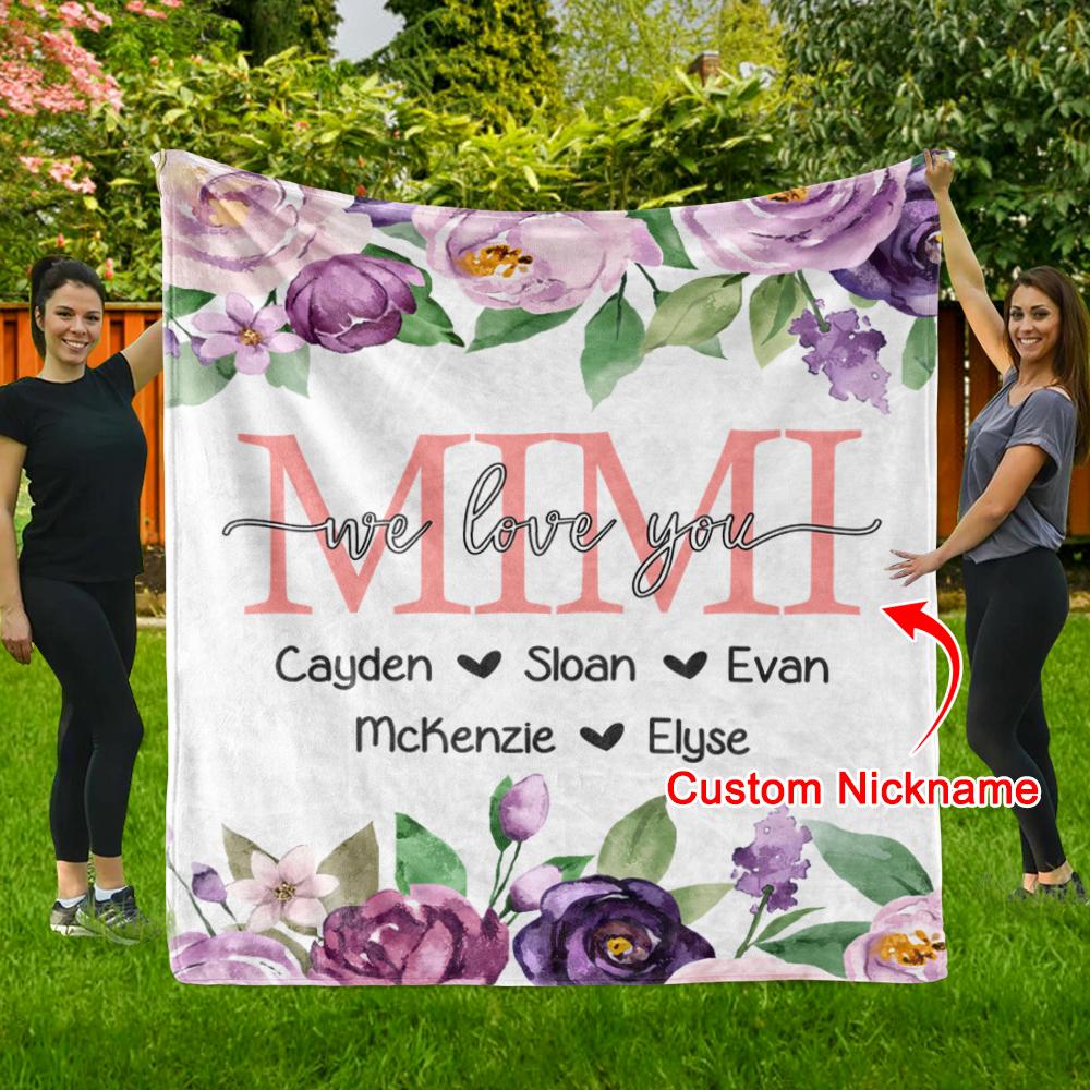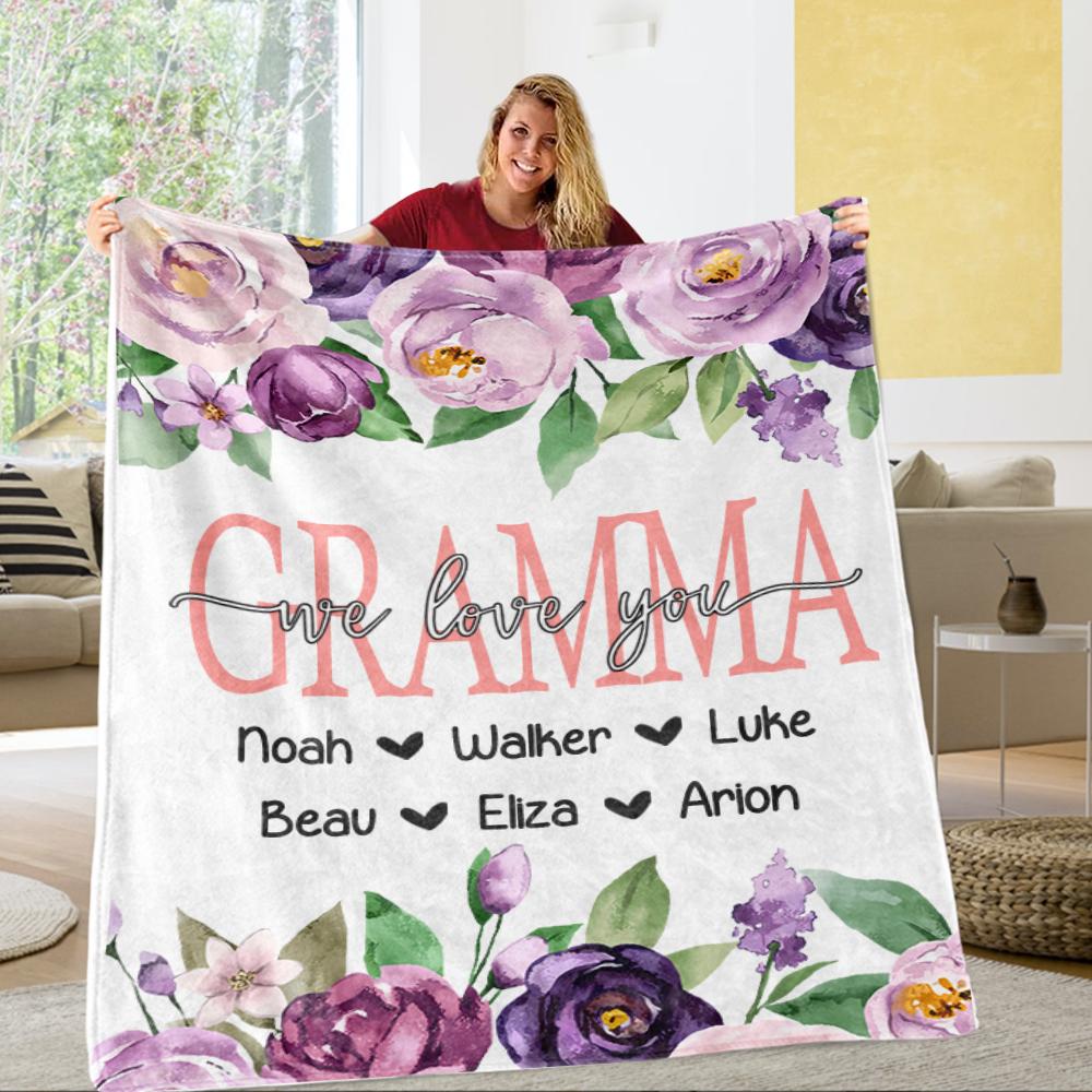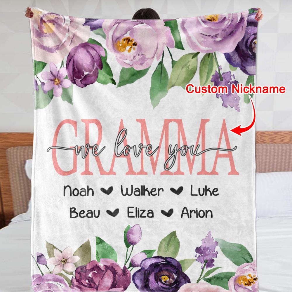 Personalize this blanket with your Nickname of a loved one & her grandkids' or kids' names!