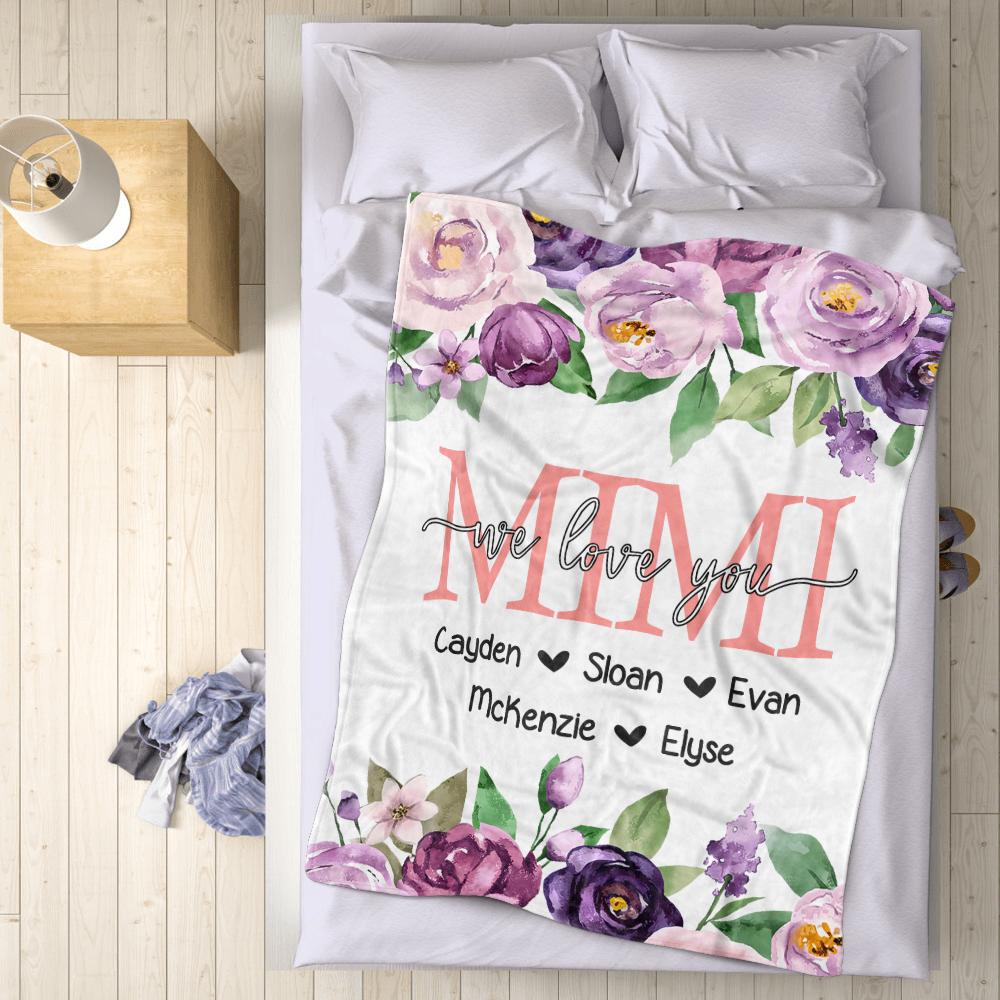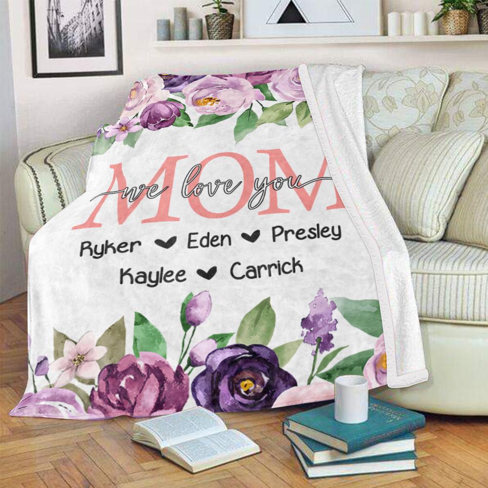 Personalized Purple Floral Cozy Plush Fleece Blankets with Your Nick & Kids' Names-BUY 2 SAVE 10%