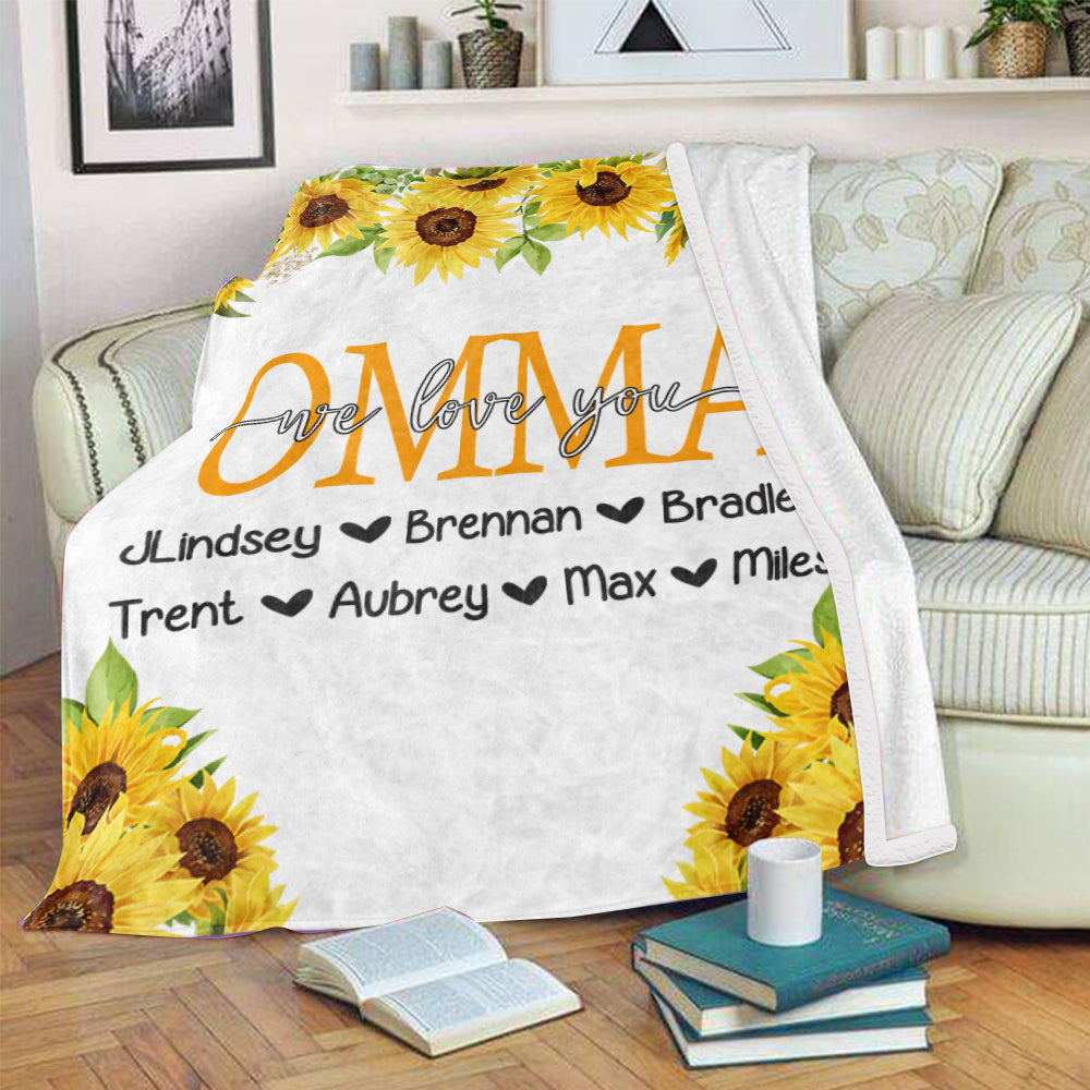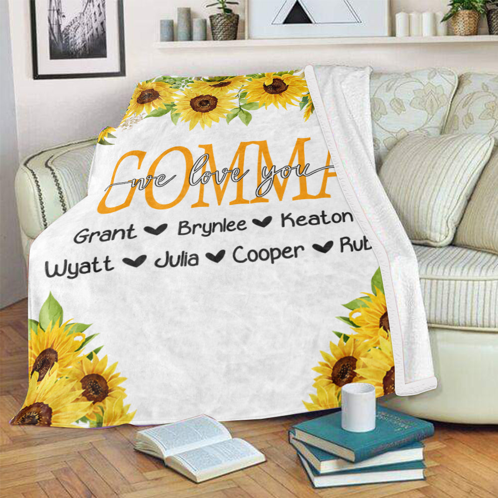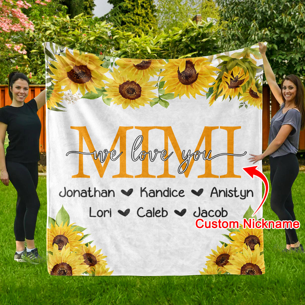Personalized Sunflower Cozy Plush Fleece Blankets with Your Nick & Kids' Names-BUY 2 SAVE 10%