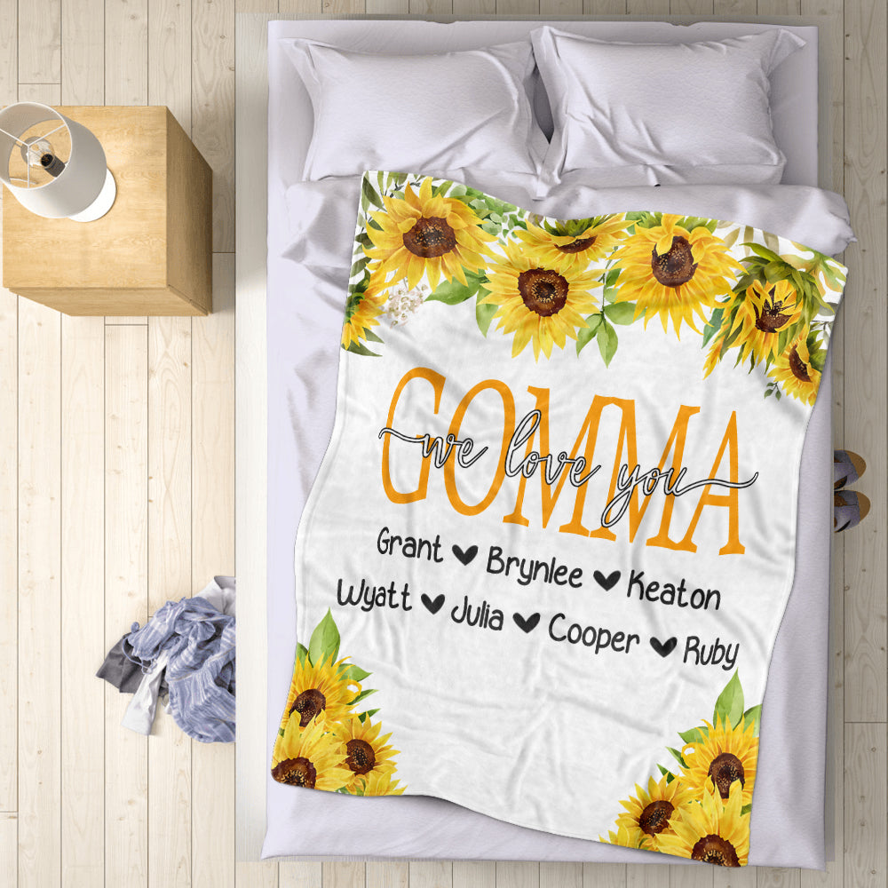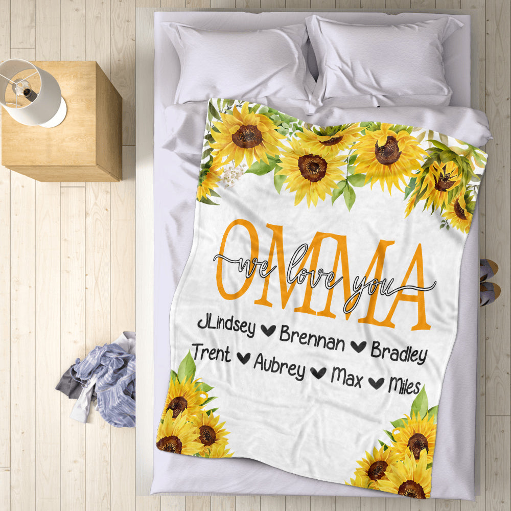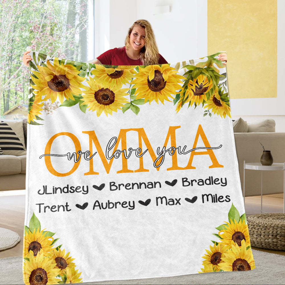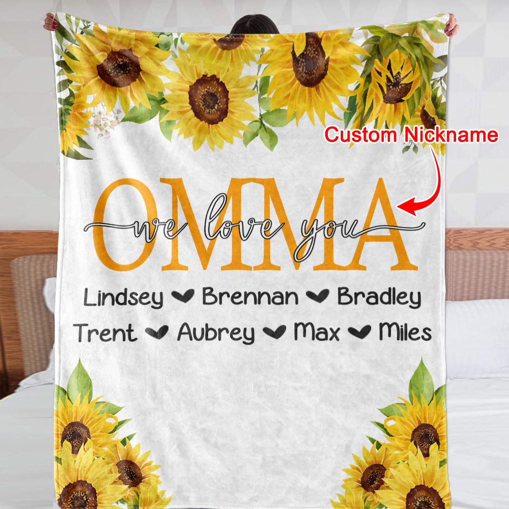 Personalized Sunflower Cozy Plush Fleece Blankets with Your Nick & Kids' Names-BUY 2 SAVE 10%