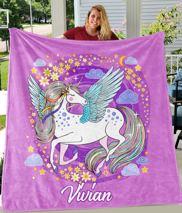 Custom Name Magical Unicorn Cozy Plush Fleece Blanket IV