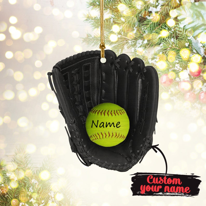 Personalized Softball Glove Ornament, Softball Glove Ornament, Softball Custom Name Ornament, Christmas Ornament For Softball Lovers Bestseller