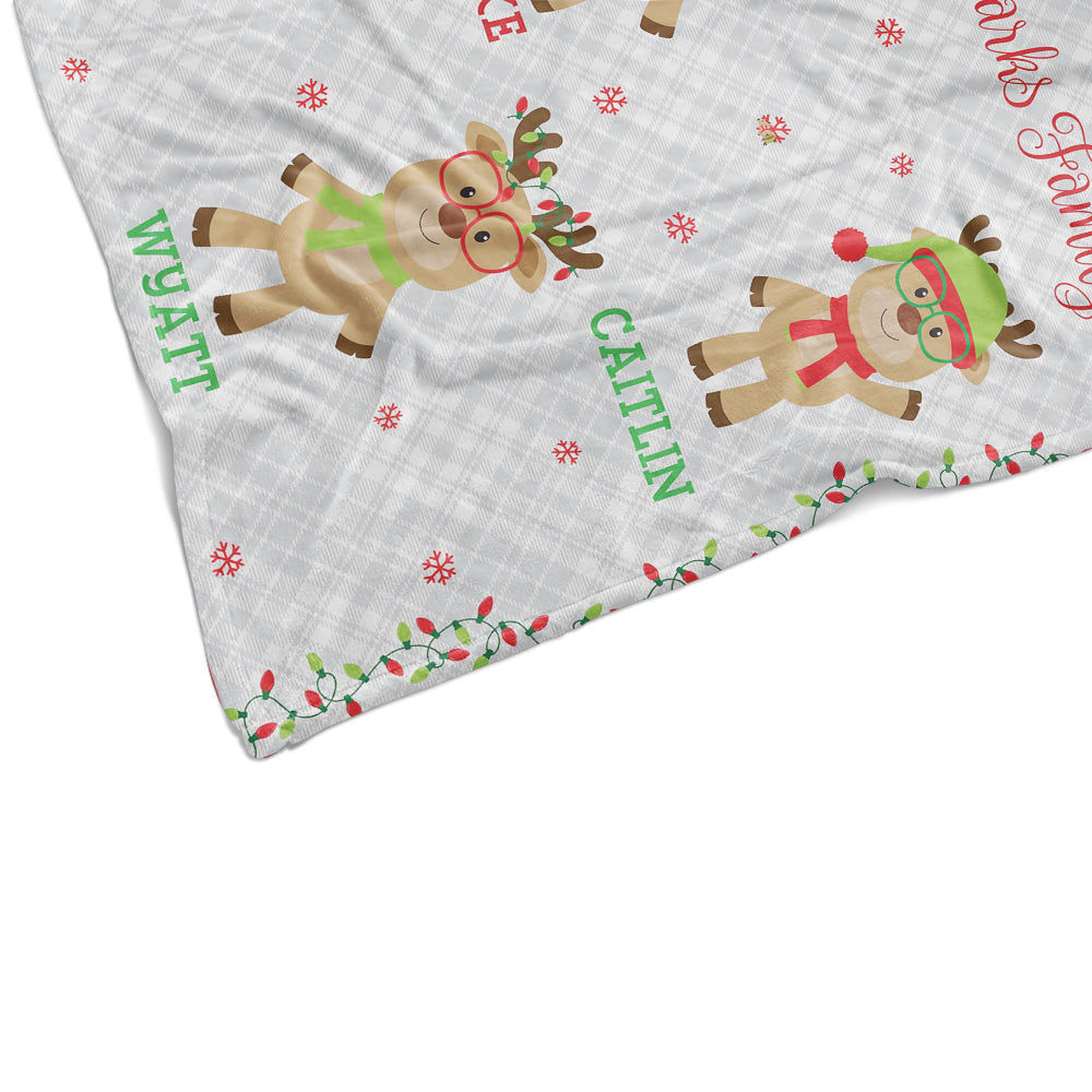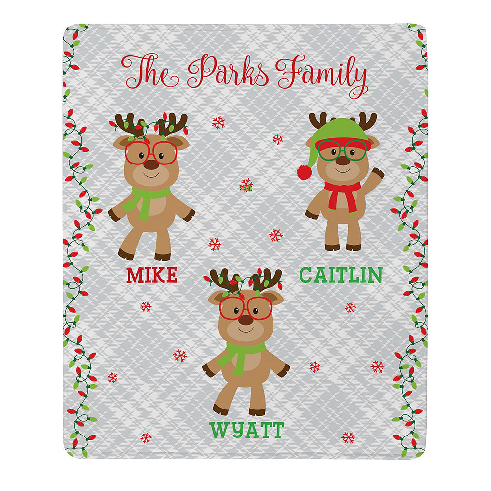 A Personal Creations Exclusive! Move over Rudolph, there’s a new team in town. Your reindeer family looks prepped and ready for Santa’s sleigh as they hang out on this extra-soft blanket.