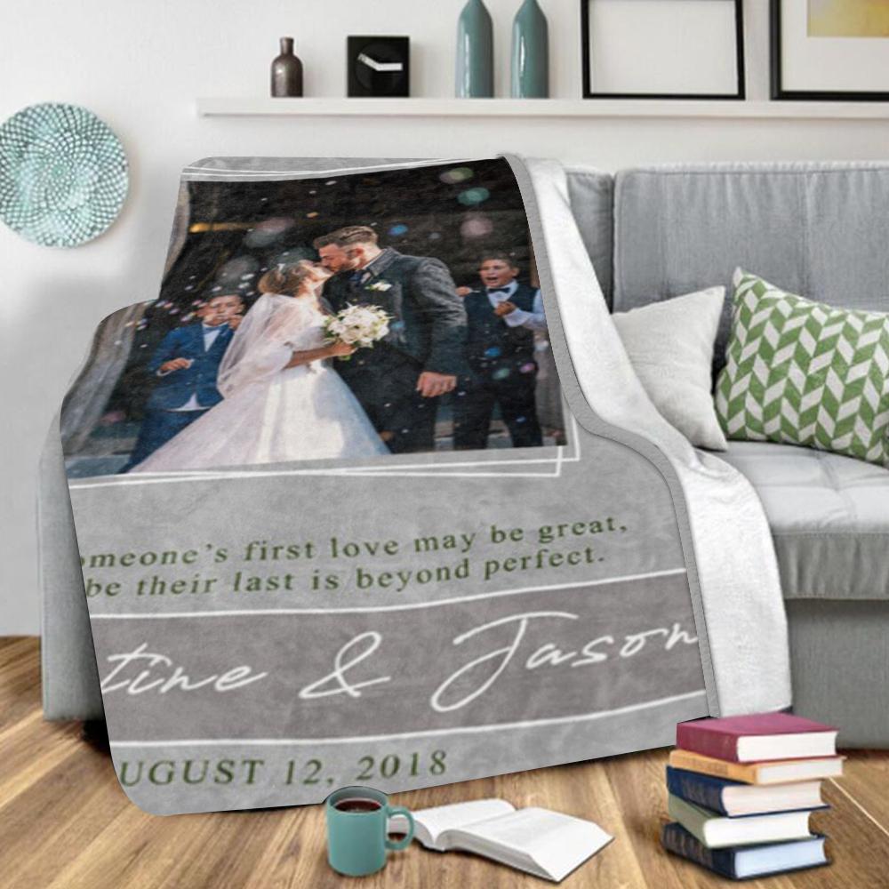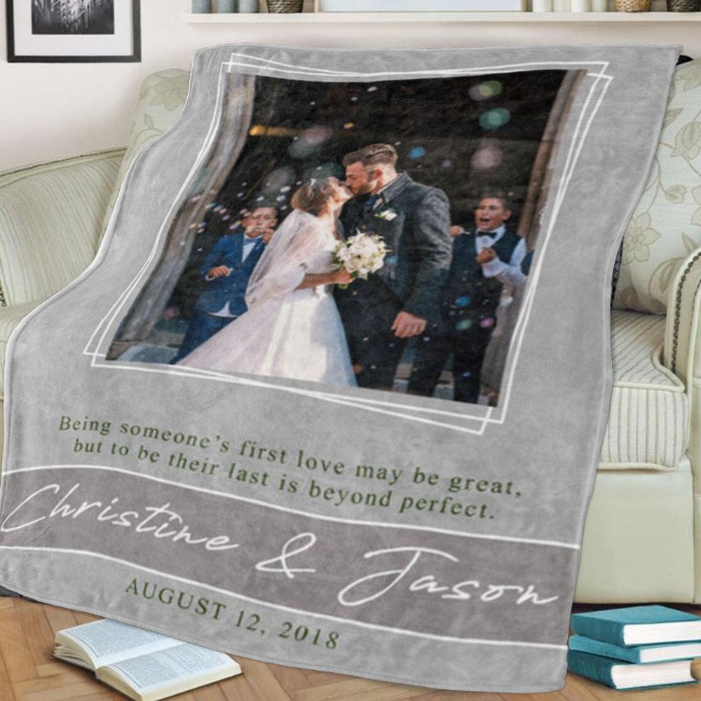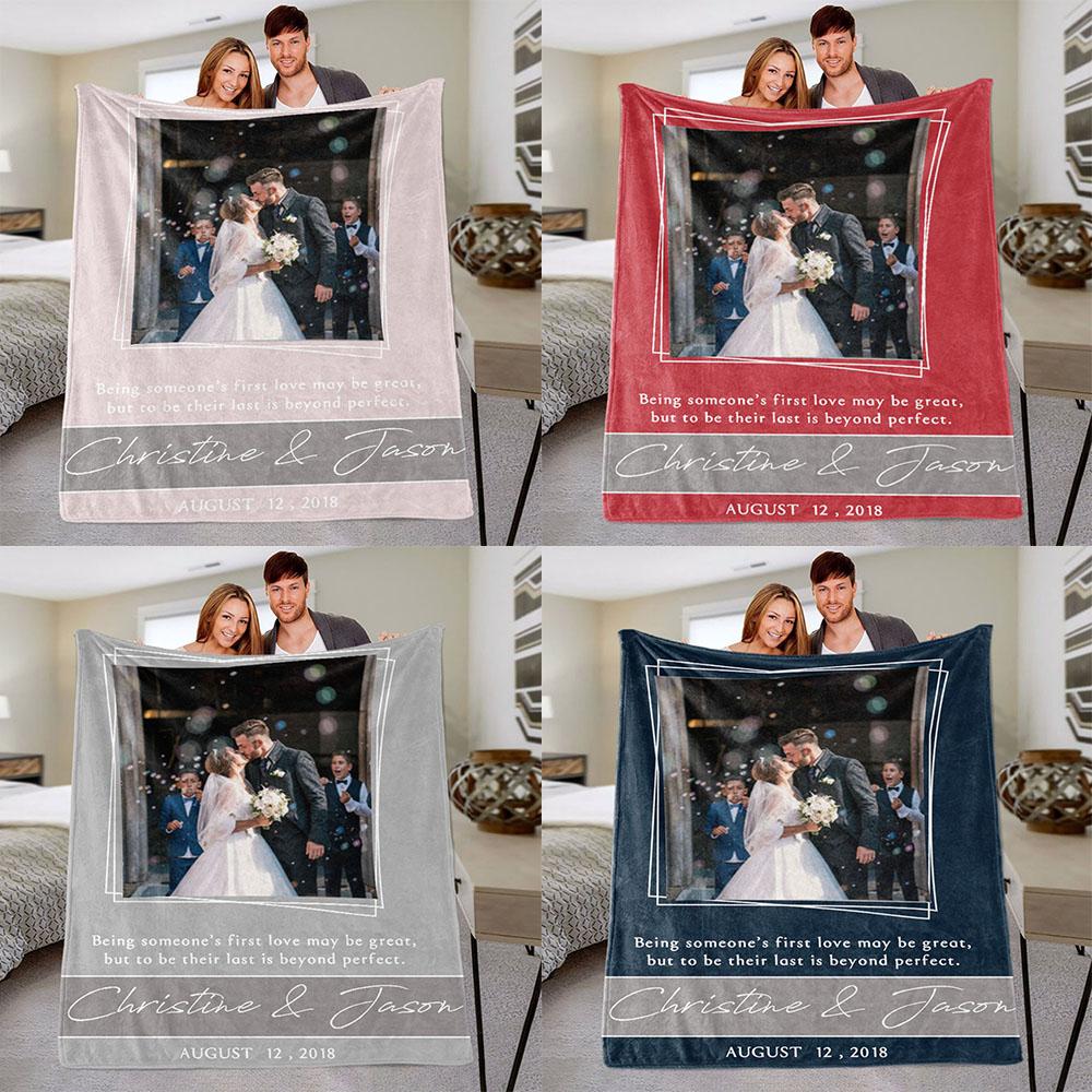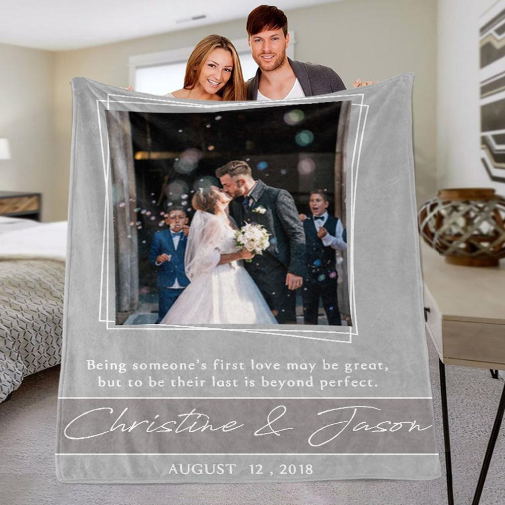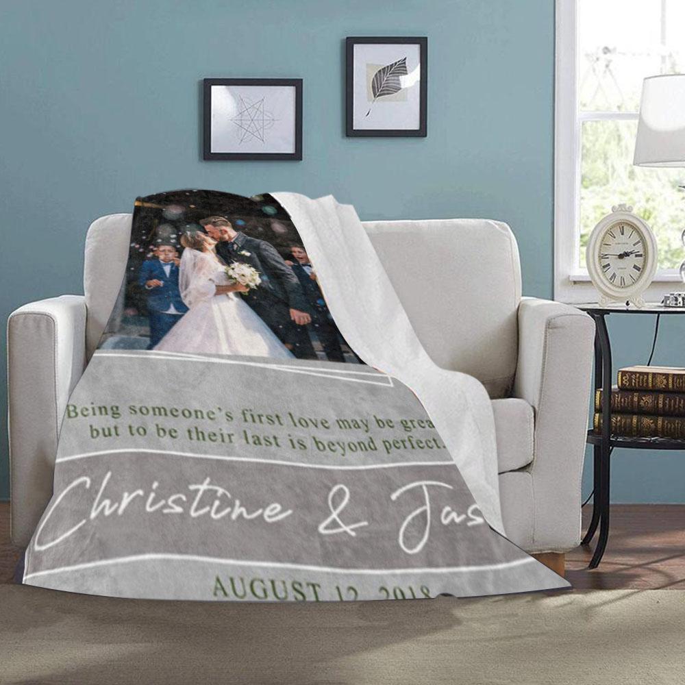 Personalized Anniversary Photo and Name Fleece Blanket, Custom Engagement Gift, Customized Bachelorette Party Bridal Shower Gift, Custom Wedding Gift